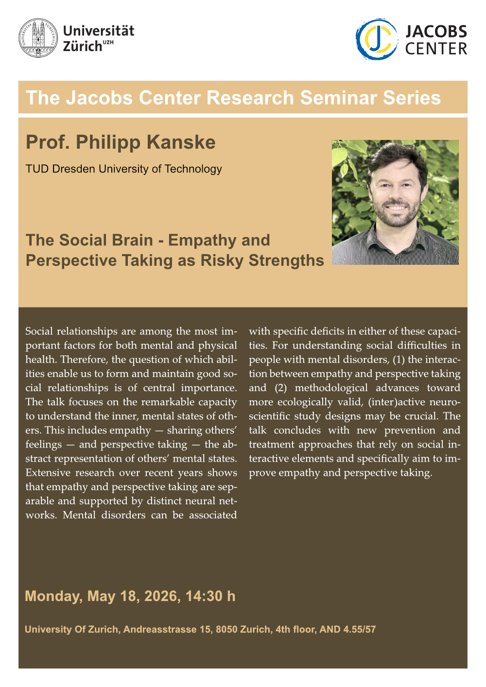 The Jacobs Center organizes each semester a series of four interdisciplinary lectures, for which internationally renowned speakers are invited. The topics are related to the Center's major research areas.